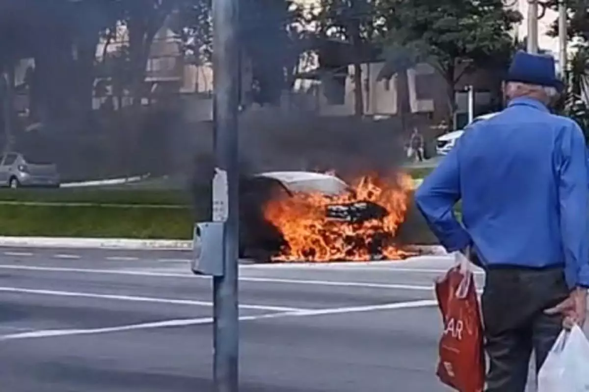 Carro é consumido pelas chamas na Zona Sul de São José dos Campos